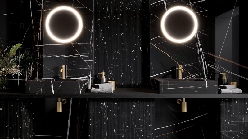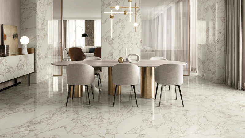 Charme Deluxe re-creates unique marbles, icons of exclusivity and beauty. Matching different looks results in an absolutely original style, capable of transforming any space.