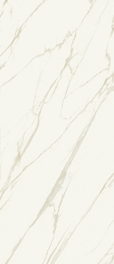 В коллекции Metropolis от Italon представлен керамогранит под натуральный камень в нескольких расцветках, каждая из которых повторяет характерную графику определенной горной породы. Самый светлый оттенок этой гаммы — Калакатта Голд: нежный белый с широкими серебристо-серыми прожилками, хаотично расположенными на молочном фоне. Назван он в честь знаменитого сорта итальянского мрамора родом из Каррары, который отличается похожей текстурой.  Такая облицовка смотрится очень выразительно и позволяет добавить в любой интерьер оригинальных акцентов.